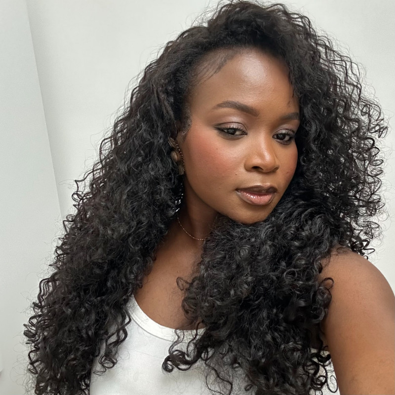 Une demi-perruque synthétique, laissez-vos cheveux devant pour un effet naturel.