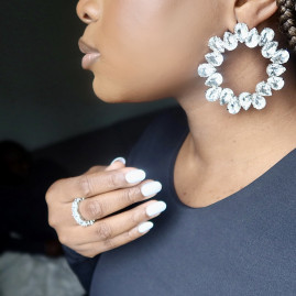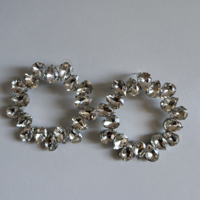 Elles sont ingénieusement conçues en cristaux incolores, taille poire sertis sur une monture en métal rhodié.
