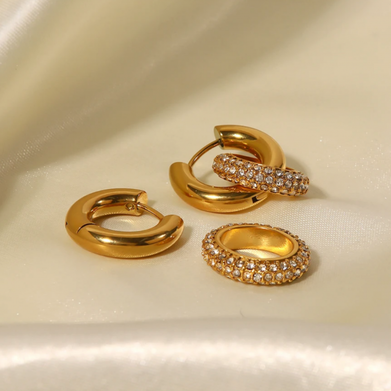Plongez dans le luxe subtil avec nos boucles d'oreilles Tasha, un mariage élégant de minis créoles accompagnées de 2 autres créoles brillantes.