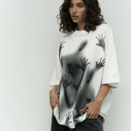 • T-shirt oversize 100% coton - col rond - texte imprimé au dos - manches tombantes. Existe en plusieurs coloris
